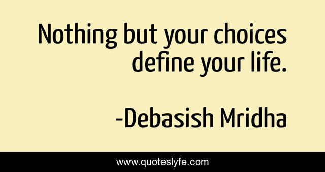 This page presents the quote "Nothing but your choices define your life.". Author of this quote is Debasish Mridha. This quote is about define-your-life, mridha, philosophy, choices, quotes, inspirational, enthusiasm, debasish-mridha-m-d,.