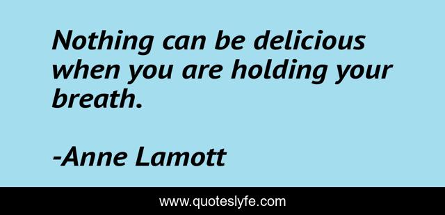 This page presents the quote "Nothing can be delicious when you are holding your breath.". Author of this quote is Anne Lamott. This quote is about spirituality, life, love, affection, personal-growth,.