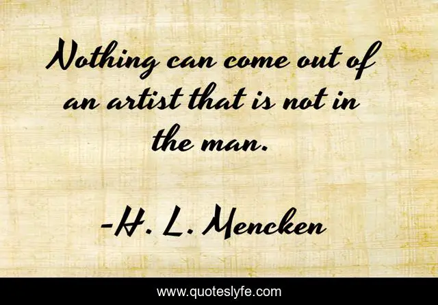 This page presents the quote "Nothing can come out of an artist that is not in the man.". Author of this quote is H. L. Mencken. This quote is about art, artist,.