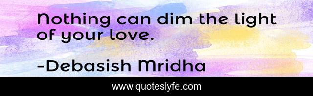 This page presents the quote "Nothing can dim the light of your love.". Author of this quote is Debasish Mridha. This quote is about dim, debasish, nothing-can-dim, light-of-your-love, mridha, philosophy, debasish-mridha,.