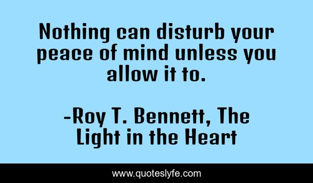 "Roy T. Bennett, The Light in the Heart Quotes." Quoteslyfe.com, 2025. Mon. 08 Dec. 2025. <https://www.quoteslyfe.com/quote/Nothing-can-disturb-your-peace-of-mind-2130>.