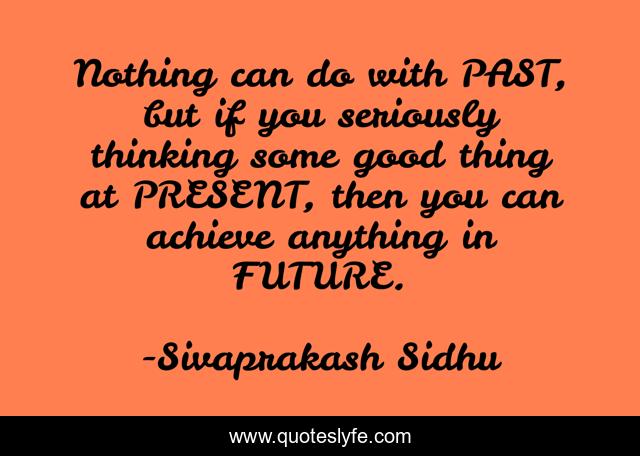 "Sivaprakash Sidhu Quotes." Quoteslyfe.com, 2025. Fri. 05 Dec. 2025. <https://www.quoteslyfe.com/quote/Nothing-can-do-with-PAST-but-if-110452>.
