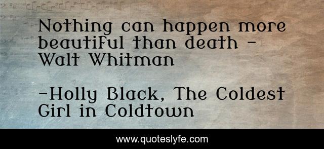 "Holly Black, The Coldest Girl in Coldtown Quotes." Quoteslyfe.com, 2025. Tue. 09 Dec. 2025. <https://www.quoteslyfe.com/quote/Nothing-can-happen-more-beautiful-than-death-61060>.