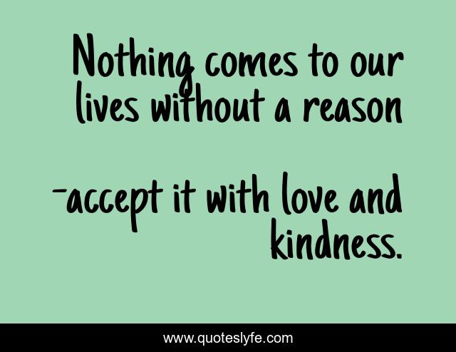 This page presents the quote "Nothing comes to our lives without a reason". Author of this quote is accept it with love and kindness.. .