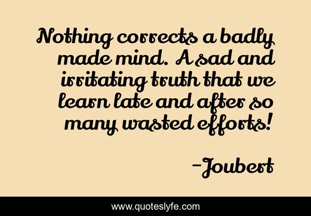 This page presents the quote "Nothing corrects a badly made mind. A sad and irritating truth that we learn late and after so many wasted efforts!". Author of this quote is Joubert. .