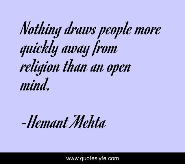 This page presents the quote "Nothing draws people more quickly away from religion than an open mind.". Author of this quote is Hemant Mehta. This quote is about atheism, religion,.