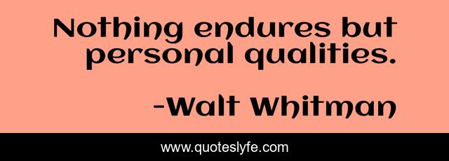 "Walt Whitman Quotes." Quoteslyfe.com, 2025. Fri. 05 Dec. 2025. <https://www.quoteslyfe.com/quote/Nothing-endures-but-personal-qualities-274430>.