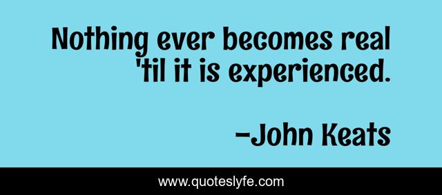 This page presents the quote "Nothing ever becomes real 'til it is experienced.". Author of this quote is John Keats. This quote is about experience, reality,.
