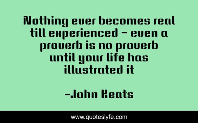 This page presents the quote "Nothing ever becomes real till experienced – even a proverb is no proverb until your life has illustrated it". Author of this quote is John Keats. This quote is about life, experience, reality,.
