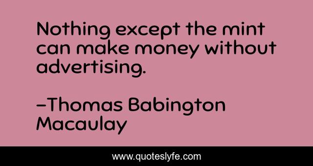 This page presents the quote "Nothing except the mint can make money without advertising.". Author of this quote is Thomas Babington Macaulay. This quote is about nothing, advertising,.