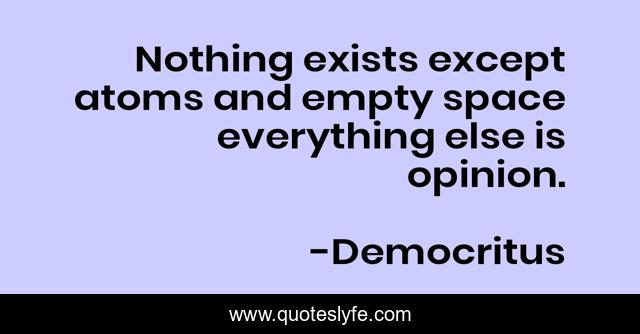 This page presents the quote "Nothing exists except atoms and empty space everything else is opinion.". Author of this quote is Democritus. This quote is about nothing, opinion, brainy,.