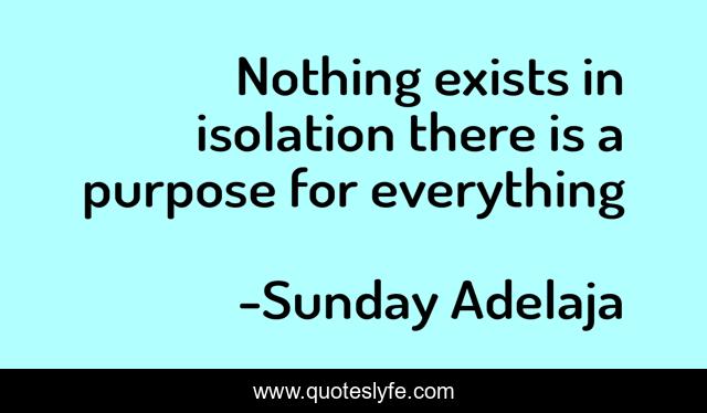This page presents the quote "Nothing exists in isolation there is a purpose for everything". Author of this quote is Sunday Adelaja. This quote is about love, people, money, principles, employment, worship, jobless, service, god,.