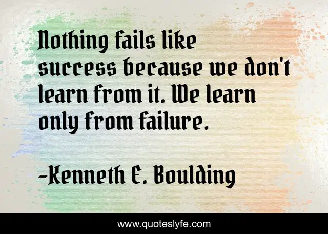 This page presents the quote "Nothing fails like success because we don't learn from it. We learn only from failure.". Author of this quote is Kenneth E. Boulding. This quote is about failure, learning, success,.