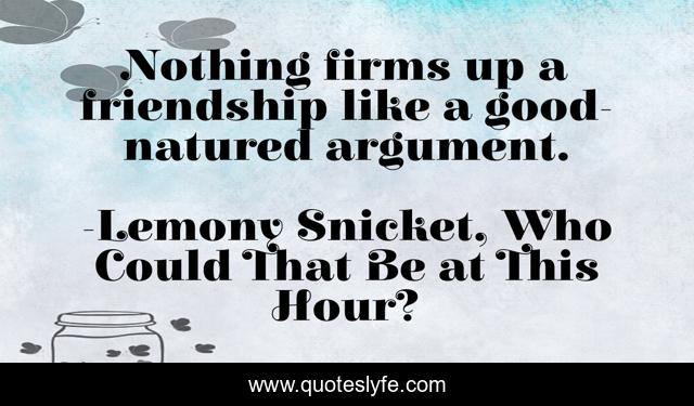 This page presents the quote "Nothing firms up a friendship like a good-natured argument.". Author of this quote is Lemony Snicket, Who Could That Be at This Hour?. This quote is about friendship, argument,.
