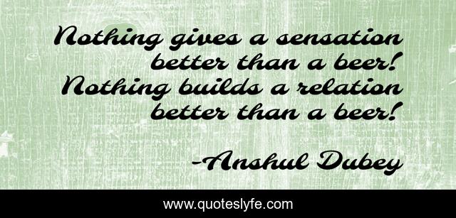 This page presents the quote "Nothing gives a sensation better than a beer! Nothing builds a relation better than a beer!". Author of this quote is Anshul Dubey. This quote is about fun, relationships, beer, drinking,.