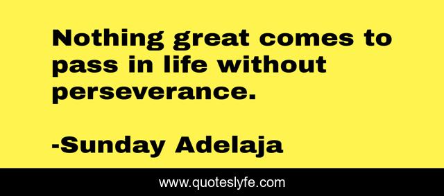This page presents the quote "Nothing great comes to pass in life without perseverance.". Author of this quote is Sunday Adelaja. This quote is about perseverance, life,.