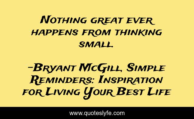 "Bryant McGill, Simple Reminders: Inspiration for Living Your Best Life Quotes." Quoteslyfe.com, 2025. Sun. 07 Dec. 2025. <https://www.quoteslyfe.com/quote/Nothing-great-ever-happens-from-thinking-small-163093>.