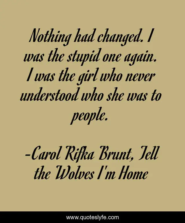 "Carol Rifka Brunt, Tell the Wolves I'm Home Quotes." Quoteslyfe.com, 2025. Sat. 06 Dec. 2025. <https://www.quoteslyfe.com/quote/Nothing-had-changed-I-was-the-stupid-1044>.