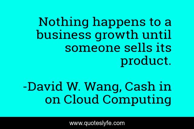 This page presents the quote "Nothing happens to a business growth until someone sells its product.". Author of this quote is David W. Wang, Cash in on Cloud Computing. This quote is about technology, business,.