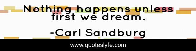 This page presents the quote "Nothing happens unless first we dream.". Author of this quote is Carl Sandburg. This quote is about happens, nothing, dream,.