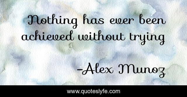 "Alex Munoz Quotes." Quoteslyfe.com, 2025. Mon. 15 Dec. 2025. <https://www.quoteslyfe.com/quote/Nothing-has-ever-been-achieved-without-trying-258438>.
