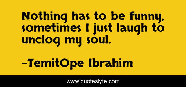 This page presents the quote "Nothing has to be funny, sometimes I just laugh to unclog my soul.". Author of this quote is TemitOpe Ibrahim. This quote is about inspirational, joy, create-your-own-funny, choose-joy, laugh, enthusiasm, laughter, choose-laughter,.