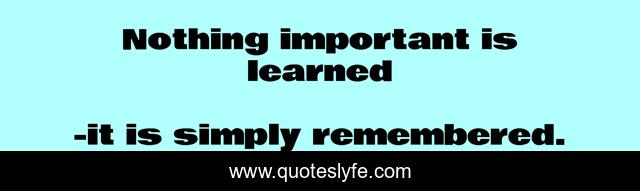"it is simply remembered. Quotes." Quoteslyfe.com, 2025. Fri. 05 Dec. 2025. <https://www.quoteslyfe.com/quote/Nothing-important-is-learned-7432>.