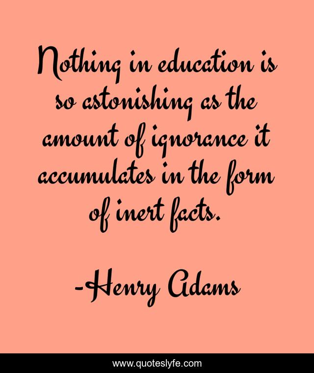 This page presents the quote "Nothing in education is so astonishing as the amount of ignorance it accumulates in the form of inert facts.". Author of this quote is Henry Adams. .