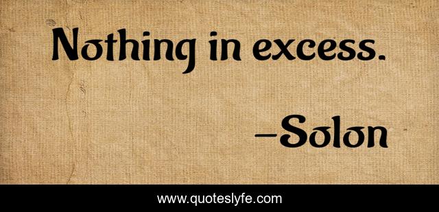 This page presents the quote "Nothing in excess.". Author of this quote is Solon. .