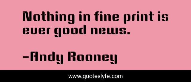This page presents the quote "Nothing in fine print is ever good news.". Author of this quote is Andy Rooney. .