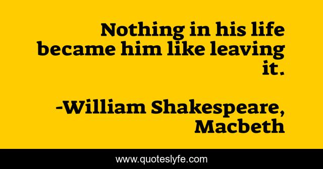 This page presents the quote "Nothing in his life became him like leaving it.". Author of this quote is William Shakespeare, Macbeth. .