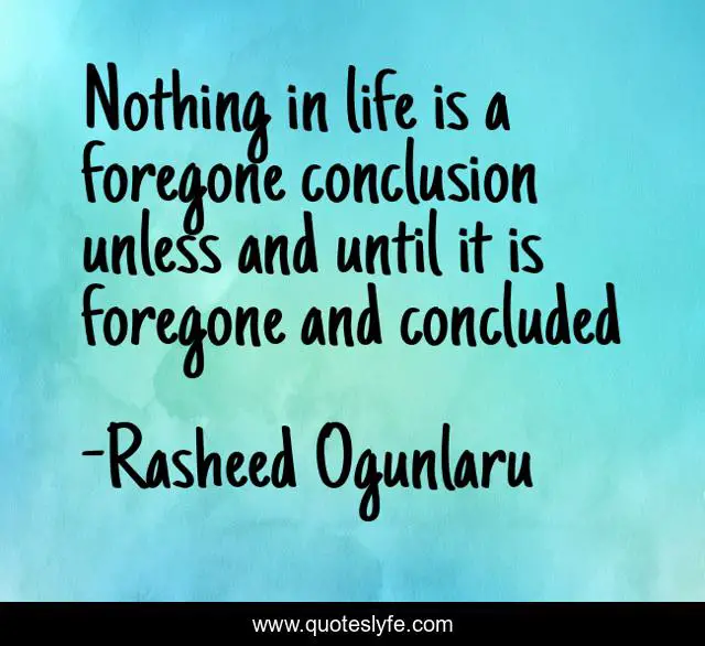 "Rasheed Ogunlaru Quotes." Quoteslyfe.com, 2025. Fri. 05 Dec. 2025. <https://www.quoteslyfe.com/quote/Nothing-in-life-is-a-foregone-conclusion-107343>.