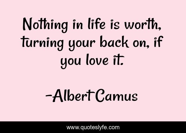 This page presents the quote "Nothing in life is worth, turning your back on, if you love it.". Author of this quote is Albert Camus. This quote is about life, love, affection,.