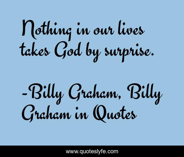This page presents the quote "Nothing in our lives takes God by surprise.". Author of this quote is Billy Graham, Billy Graham in Quotes. This quote is about god, billy-graham,.