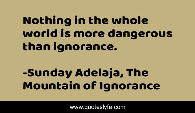 This page presents the quote "Nothing in the whole world is more dangerous than ignorance.". Author of this quote is Sunday Adelaja, The Mountain of Ignorance. This quote is about mountain, life, darkness, power, danger, god, people, ignorance, light,.