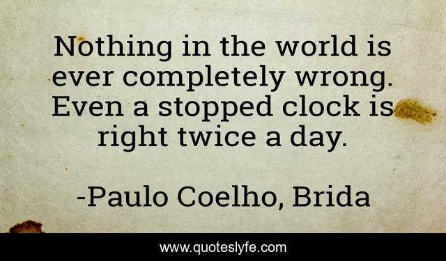 This page presents the quote "Nothing in the world is ever completely wrong. Even a stopped clock is right twice a day.". Author of this quote is Paulo Coelho, Brida. This quote is about enthusiasm, motivation, inspirational,.