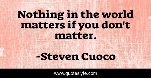 This page presents the quote "Nothing in the world matters if you don't matter.". Author of this quote is Steven Cuoco. This quote is about brainy, quote-of-the-day, quote-of-the-week, quote-about-life, quotes-to-live-by, quotes-of-life, brainy-words,.