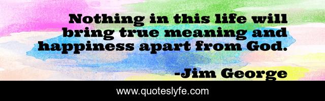 This page presents the quote "Nothing in this life will bring true meaning and happiness apart from God.". Author of this quote is Jim George. This quote is about faith, life, christian, god, meaningful-life, bring, meaning, meaningful, nothing,.
