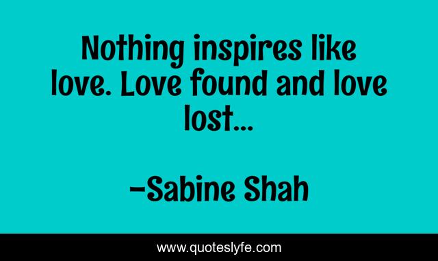 This page presents the quote "Nothing inspires like love. Love found and love lost...". Author of this quote is Sabine Shah. This quote is about found, lost, love, inspire, affection,.