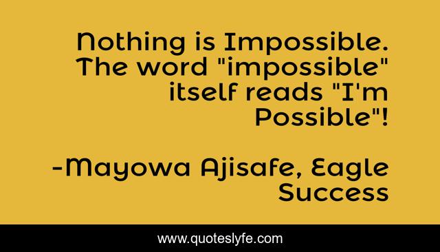 "Mayowa Ajisafe, Eagle Success Quotes." Quoteslyfe.com, 2025. Sat. 06 Dec. 2025. <https://www.quoteslyfe.com/quote/Nothing-is-Impossible-The-word-impossible-itself-91064>.