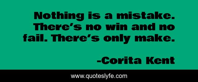 This page presents the quote "Nothing is a mistake. There’s no win and no fail. There’s only make.". Author of this quote is Corita Kent. This quote is about art, productivity,.
