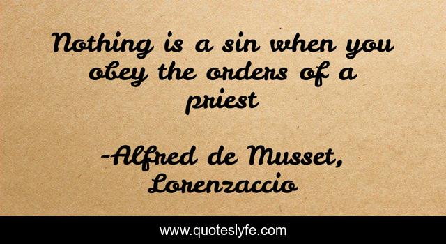 This page presents the quote "Nothing is a sin when you obey the orders of a priest". Author of this quote is Alfred de Musset, Lorenzaccio. This quote is about religion, sin, christianity,.
