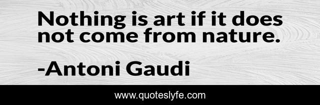 This page presents the quote "Nothing is art if it does not come from nature.". Author of this quote is Antoni Gaudi. This quote is about nothing, art, come,.