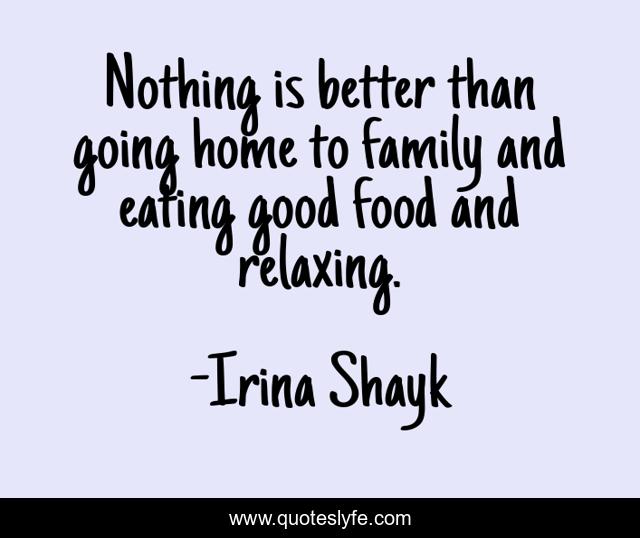 This page presents the quote "Nothing is better than going home to family and eating good food and relaxing.". Author of this quote is Irina Shayk. This quote is about food, home, good, family love,.