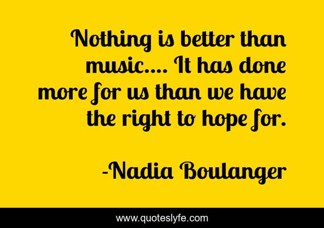 This page presents the quote "Nothing is better than music.... It has done more for us than we have the right to hope for.". Author of this quote is Nadia Boulanger. .