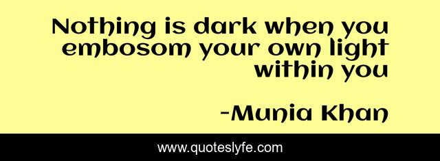 This page presents the quote "Nothing is dark when you embosom your own light within you". Author of this quote is Munia Khan. This quote is about spiritual-growth, spiritual, darkness, spirituality, embosom, inside, within, wisdom, within-you,.