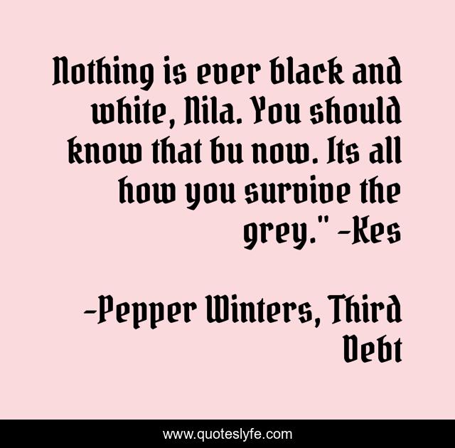 "Pepper Winters, Third Debt Quotes." Quoteslyfe.com, 2025. Mon. 08 Dec. 2025. <https://www.quoteslyfe.com/quote/Nothing-is-ever-black-and-white-Nila-125054>.
