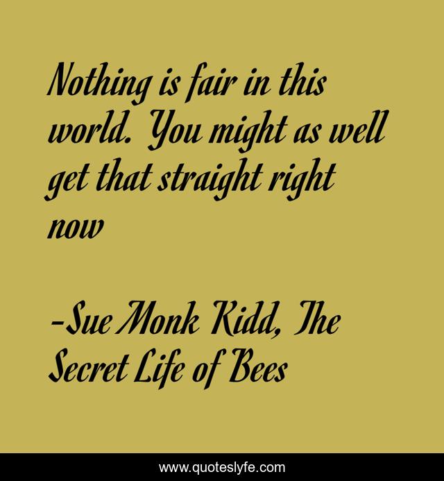 "Sue Monk Kidd, The Secret Life of Bees Quotes." Quoteslyfe.com, 2025. Mon. 08 Dec. 2025. <https://www.quoteslyfe.com/quote/Nothing-is-fair-in-this-world-You-75508>.