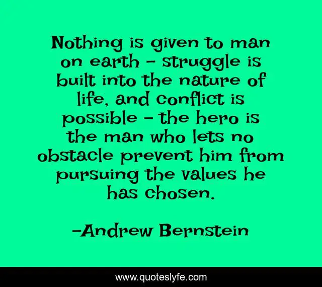 Nothing is given to man on earth - struggle is built into the nature of life, and conflict is possible - the hero is the man who lets no obstacle prevent him from pursuing the values he has chosen.