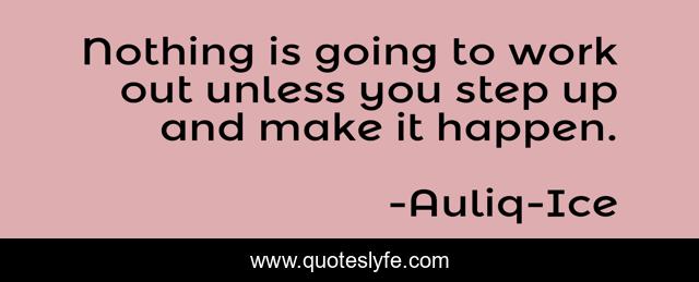 This page presents the quote "Nothing is going to work out unless you step up and make it happen.". Author of this quote is Auliq-Ice. This quote is about faith, belief, hard-work, actions-speak-louder-than-words, courage, trust, dreams,.